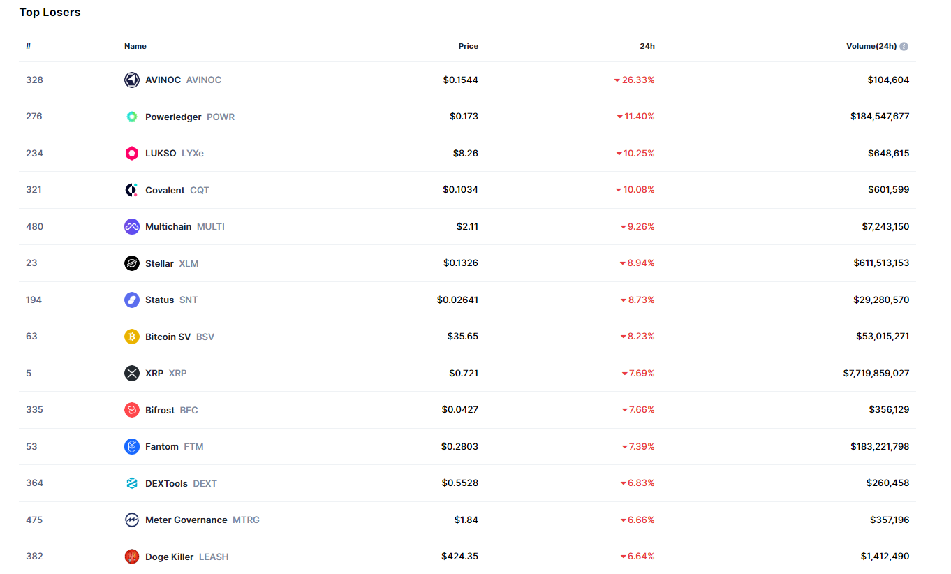 Bugün itibariyle yüzde 26 oranında değer kaybeden AVINOC, yatırımcıların dikkatini üzerine çekti. AVINOC haricinde şu altcoin’lerde ciddi düşüşler yaşadı: