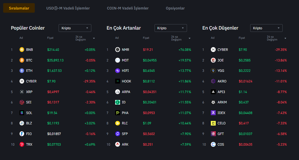 Bugün itibariyle NMR isimli altcoin yüzde 76 oranında yükselirken, CYBER isimli altcoin ise yüzde 30 oranında düşüş yaşadı. Artan ve düşen ürünlere baktığımızda, fazlasıyla dengeli olduğu görülüyor.