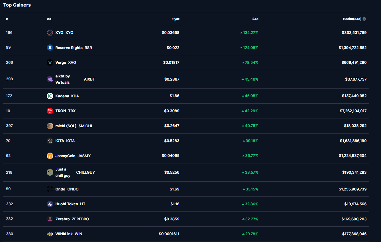 BTC ve ETH’nin yanı sıra diğer kripto varlıklarda hareketliliğinde devam ettiği görüldü. Hadi gelin bugünün en çok yükselen altcoin’lerine yakından göz atalım: