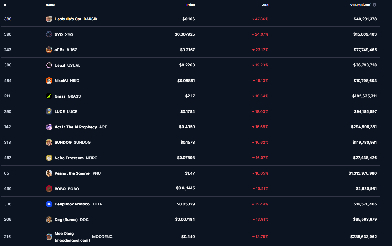 Başarılı veri sağlayıcısı CoinMarketCap’in aktardıklarına göre ilk 500 kripto para birimi içerisinde son 24 saat özelinde en çok düşüşü %47 ile birlikte BARSIK isimli altcoin gerçekleştirdi.