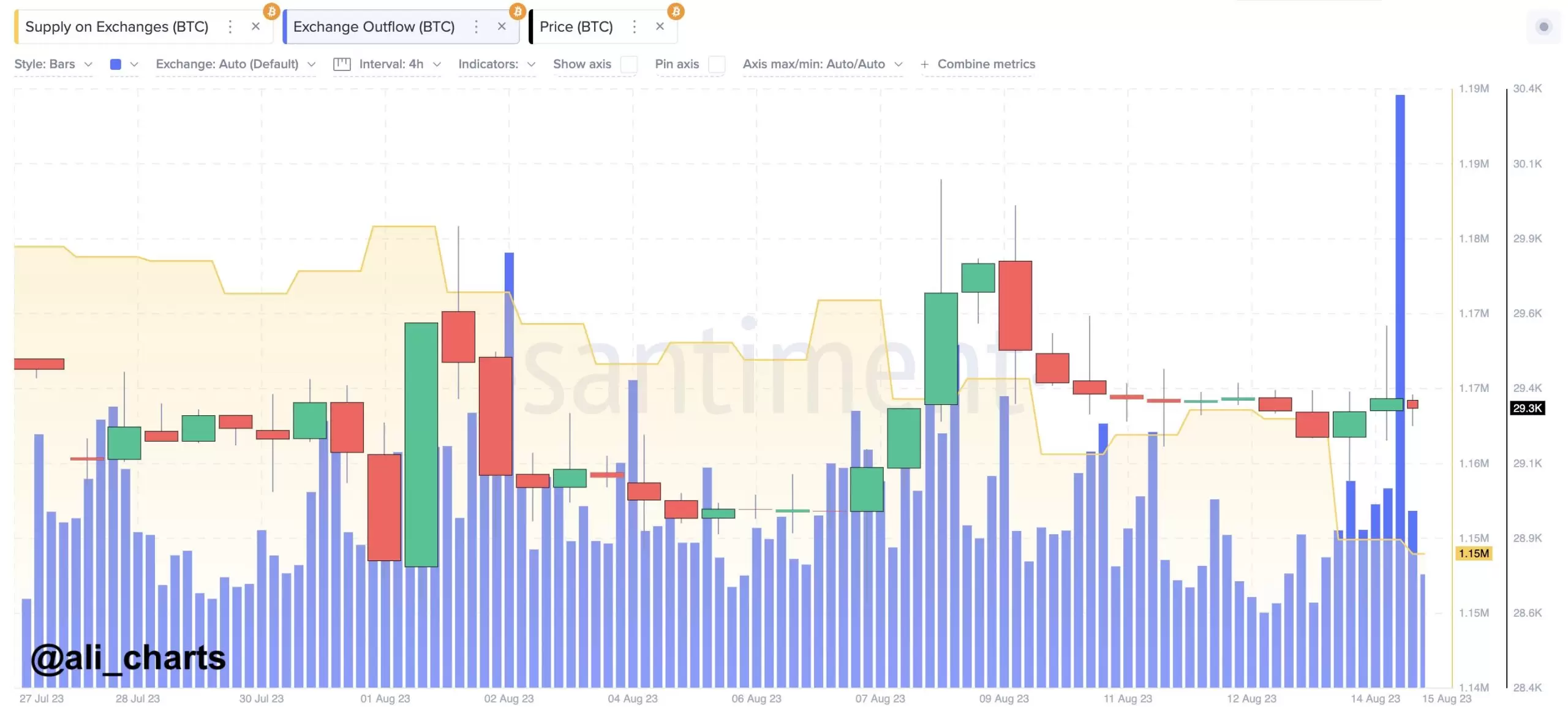 Ali’nin son paylaştığı bilgilere göre son 24 saat içerisinde kripto para borsalarından 330 milyon dolar değerinde 11 binden fazla Bitcoin (BTC) çekimi gerçekleştirildi.