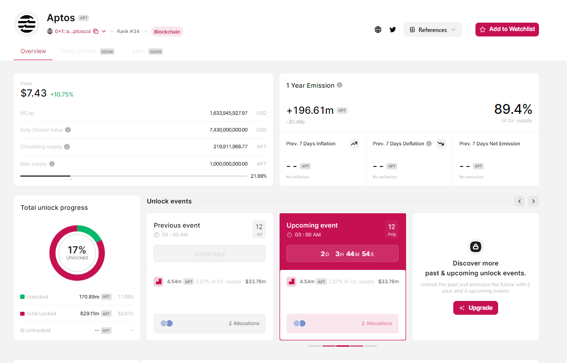 Başarılı bir veri sağlayıcısı olan Token Unlocks‘un paylaştıklarına göre 12 Ağustos günü Aptos’da (APT) yüklü bir kilit açılımı gerçekleştirilecek.