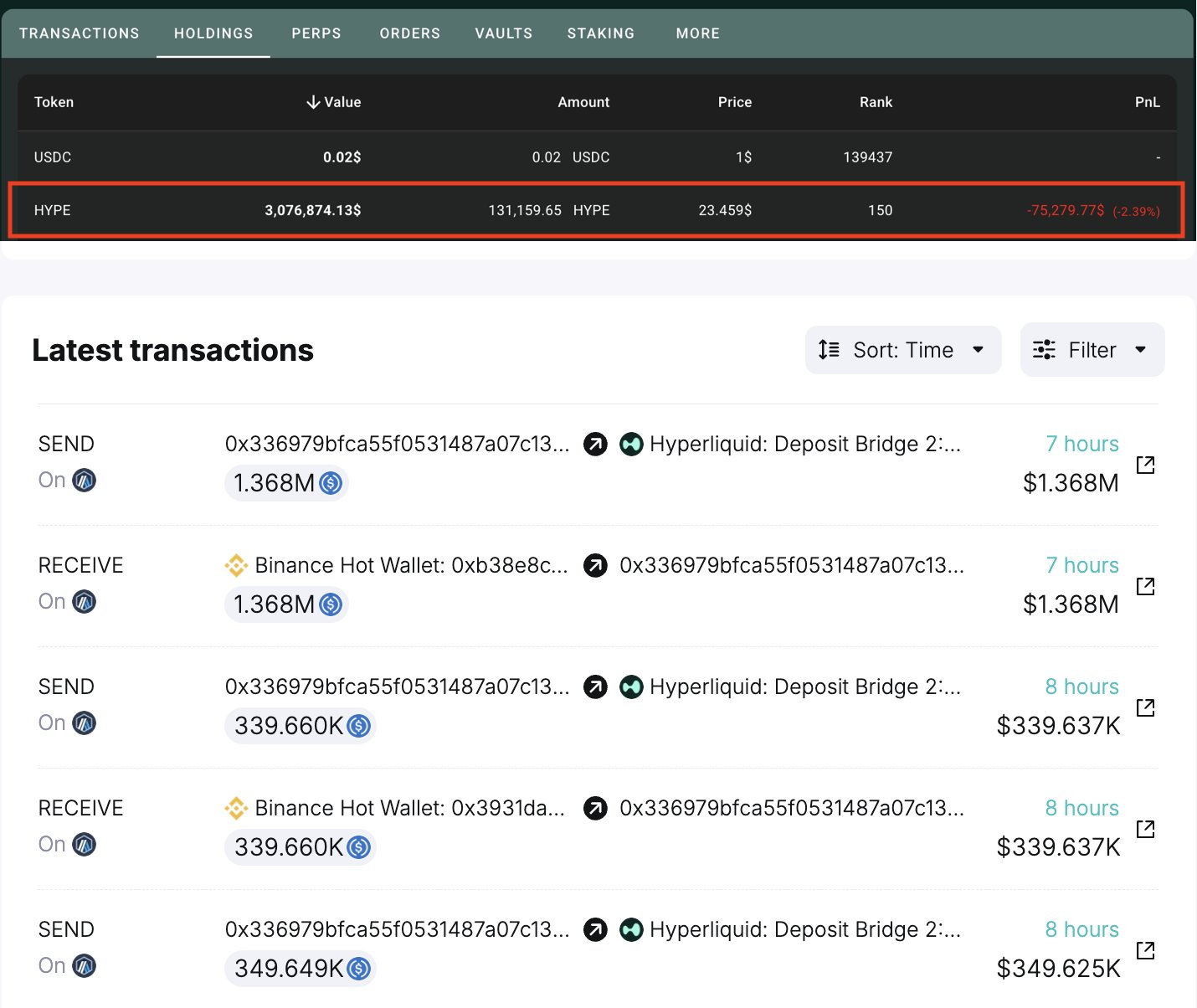 Başarılı bir zincir içi veri sağlayıcısı olan olan Spot On-Chain ise kısa bir süre önce kripto balinalarının her fırsatta HYPE satın alımı gerçekleştirdiğini ve borsalardan cüzdanlarına çektiğini tespit etti.