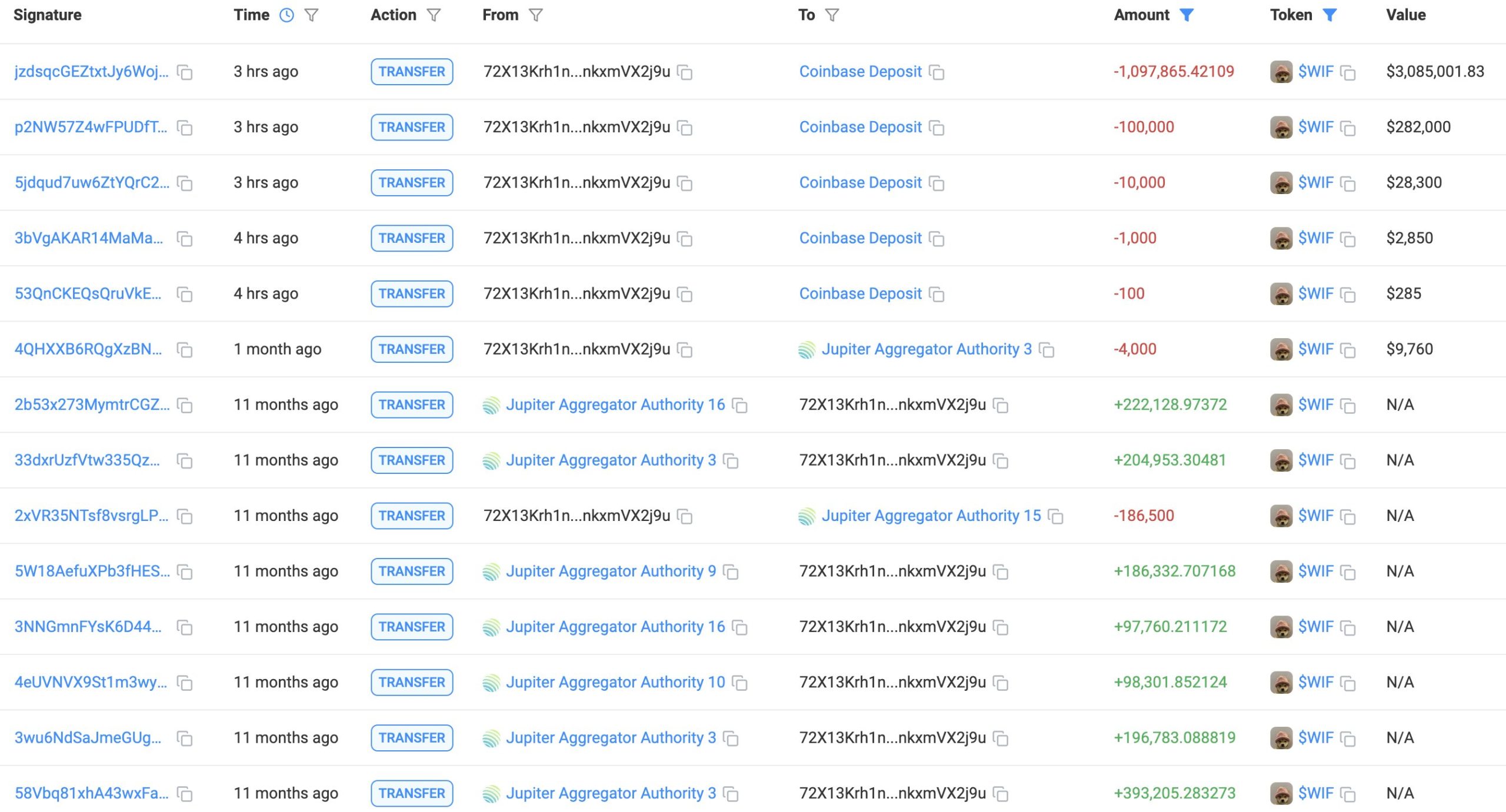 “Bir balina 3 saat önce Coinbase’e satış için 1,2 milyon adet WIF(3,47 milyon dolar değerinde) yatırdı.