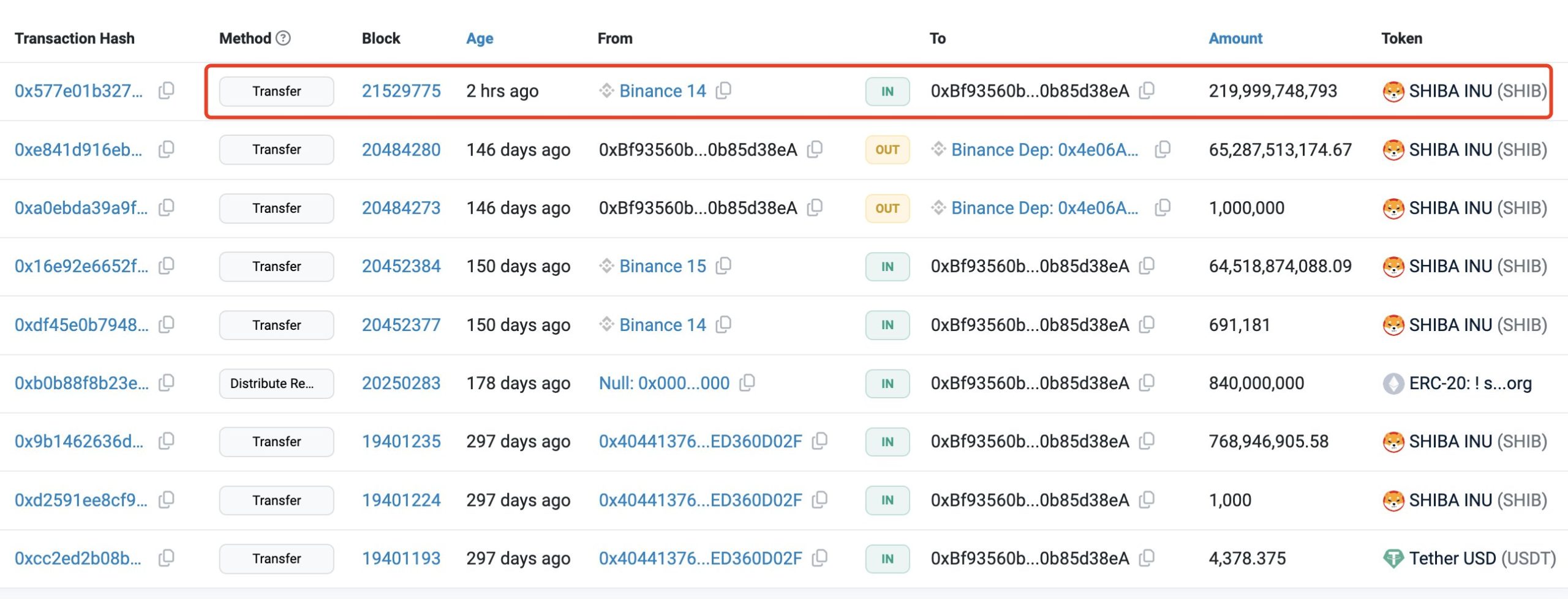 Bir balina 5 aydır hareketsiz kaldıktan sonra 2 saat önce Binance’den 220 milyar adet SHIB (4,63 milyon dolar değerinde) çekti.