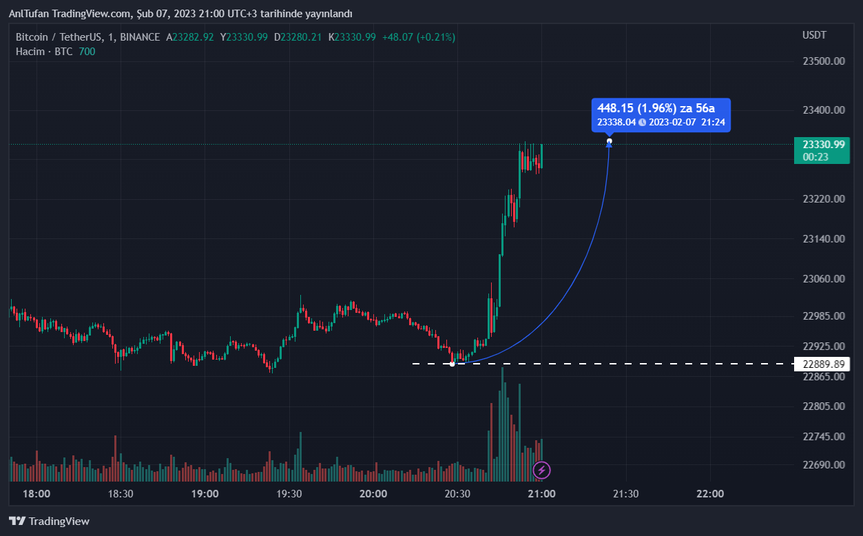 FED başkanı Jerome Powell’ın bu açıklamaları sonrasında ise lider kripto para birimi Bitcoin‘in yüzde 2 oranında yükseliş yaşadığı görüldü. BTC‘nin ilerleyen saatlerde 24 bin dolar direncini zorlaması bekleniyor.