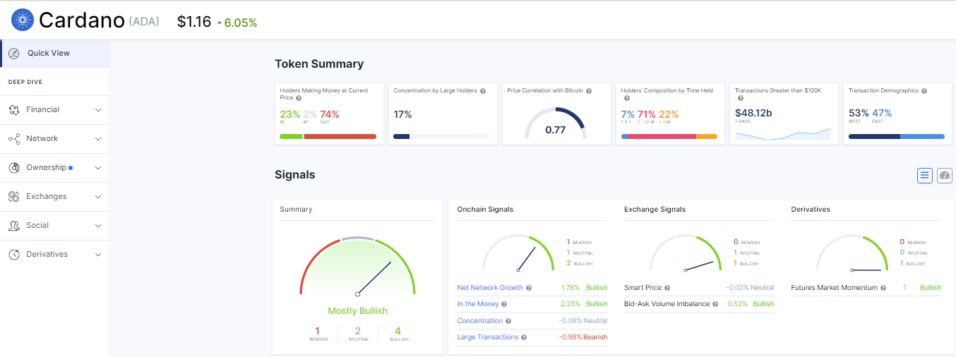 IntoTheblock verilerine bakıldığında 100.000 ila 1.000.000 ADA sahibi olan adres sayısı Aralık 2021 yılından bu yana %15.000 arttı. Santiment verilerine göre ise ocak ayının ilk haftasından bu yana ADA satın alma ortalaması günlük 53.6 milyon dolara ulaşarak ADA tutan adres sayıları iki katına çıktı.