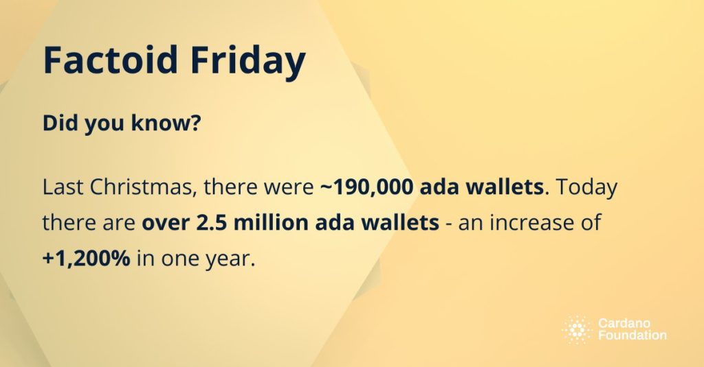 Aktif cüzdan sayısı 24 Aralık 2021 tarihi itibariyle 2.5 milyon cüzdan sayısını geçen ADA, 1.200% üzerinde büyüyerek önemli bir rekora imza attı.