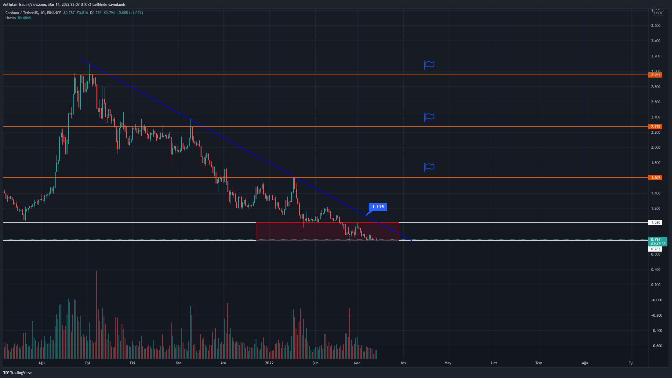 Cardano, 0.78 – 1.00 dolar destek seviyesini kaybetmesi durumunda 0.50 dolar seviyelerine kadar bir geri çekilme yaşayabilir.