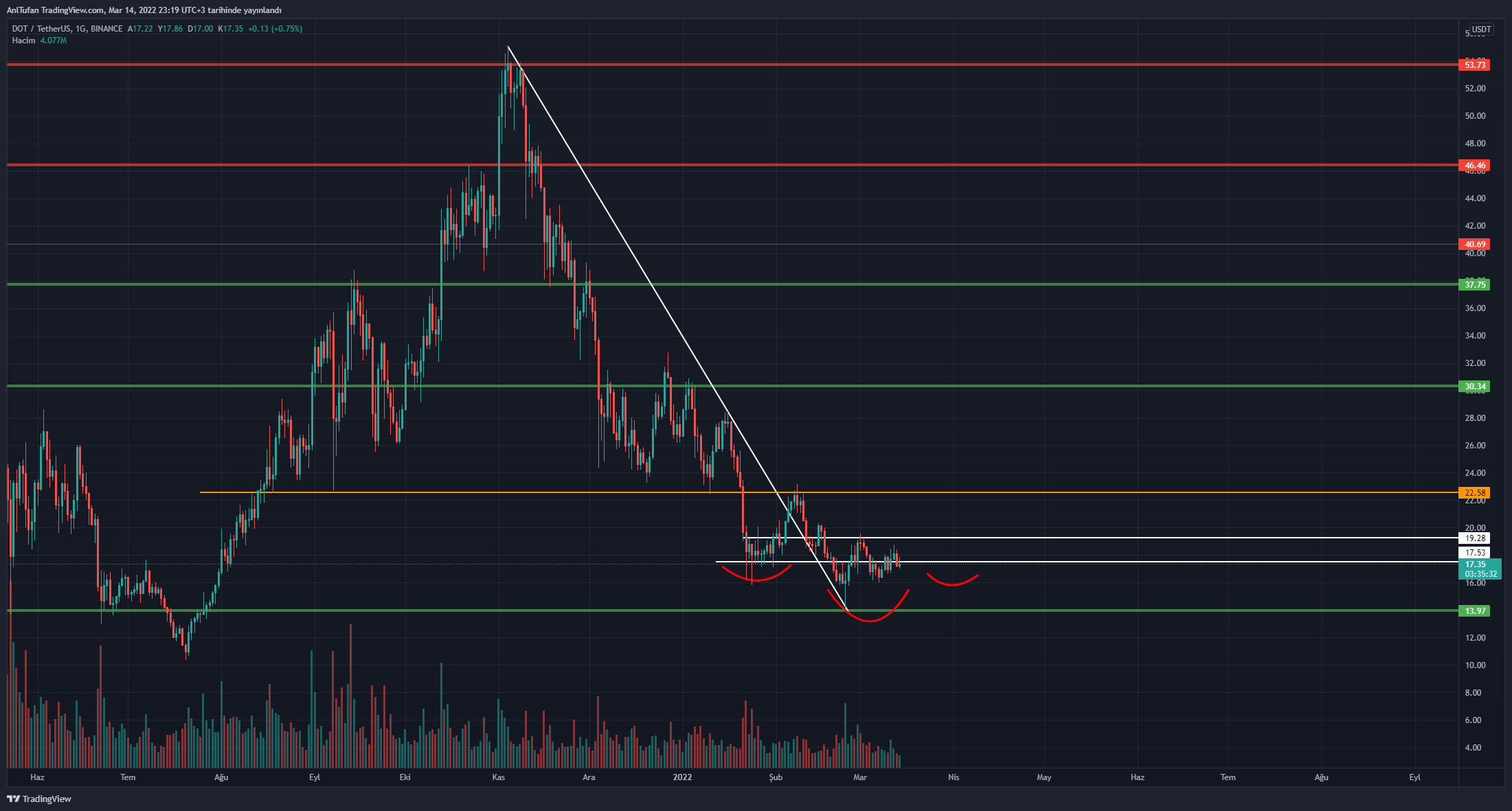 İlerleyen günlerde 17.50 dolar seviyelerinde bulunan direnci kırmasının ardından yükselişe başlayabilecek olan DOT, kısa sürede 22.50 dolar direncine kadar değer kazanabilir.