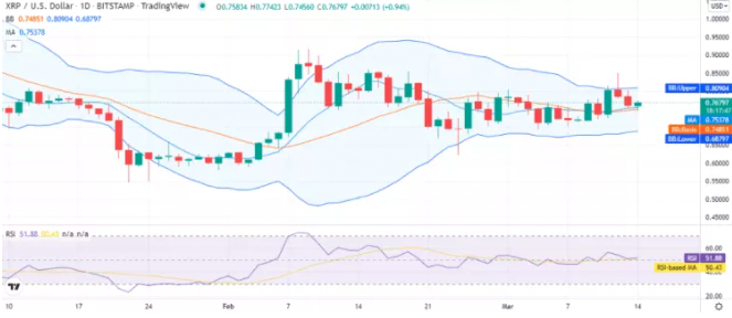 Bollinger bantlarına bakıldığında da üst çizginin 0,809 dolar olduğu ve XRP’nin bu direnci zorlayabileceği görülmekte. Fiyatın bir anda yükselmesi RSI’yi 51 seviyesine getirdi ve bu da bir hayli olumlu. Şu an yaşanan düşüşün ise 0,687 dolara kadar devam etmesi ve buradan sekmesi bekleniyor.