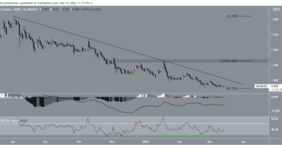 Cardano (ADA) için ise durum çok daha farklı. Günlük grafiğe bakıldığında hem RSI hem MACD, boğa yanlısı uyuşmazlık sergilemekte.