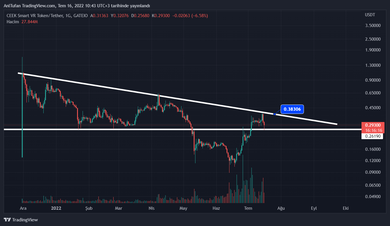 0.26 dolar desteğini kaybetmesi halinde 0.15 dolar seviyelerine kadar düşüş yaşaması beklenen CEEK, 0.38 dolar direncini kırması durumunda ise 0.50 dolar seviyelerini zorlayabilir.