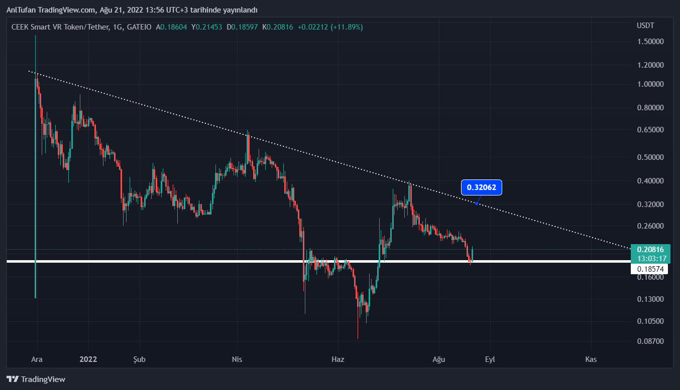 Kripto para sektörünün gündeminde yer alan bir isim olan CEEK VR, bugün itibariyle tekrardan yükselişe geçtiği görülüyor. 14 Temmuz tarihinden bu yana değer kaybeden CEEK, tekrardan toparlanmaya başlamışa benziyor.