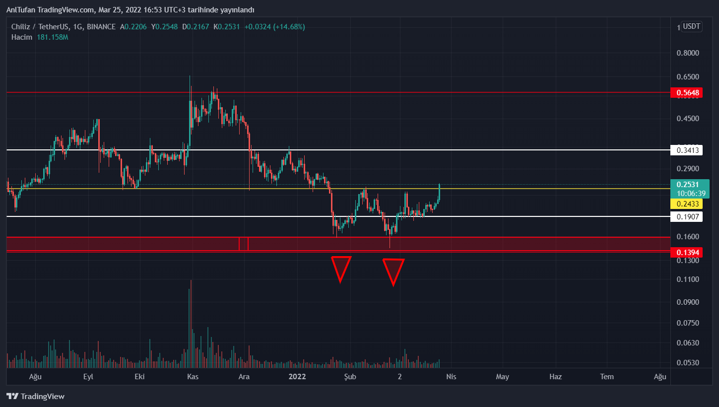 0.2433 dolar seviyesinden reddedilmesi durumunda ise CHZ kısa süre içerisinde tekrar 0.2110 – 0.2040 dolar seviyelerine kadar düşüş yaşayabilir gibi gözüküyor.