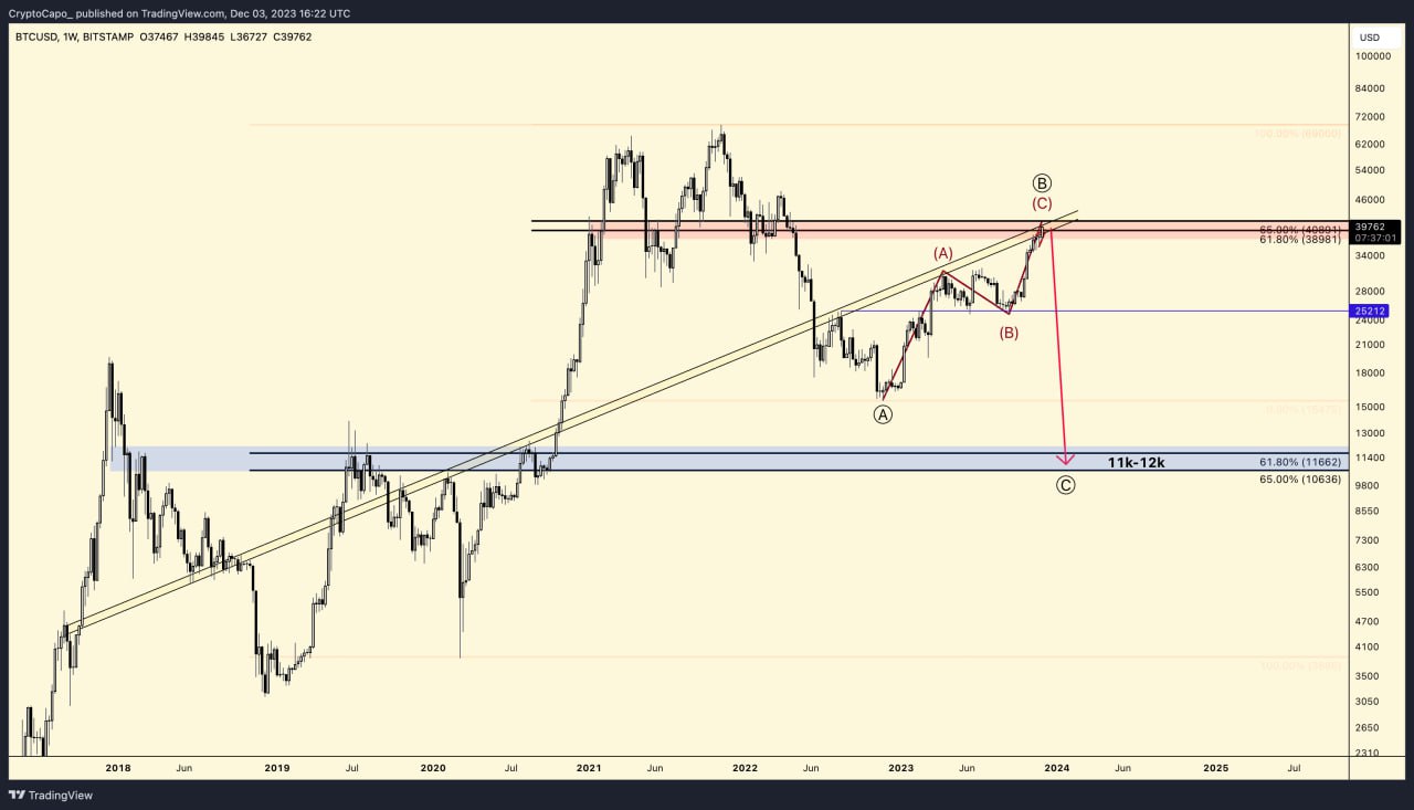 Her ne kadar lider kripto para birimi Bitcoin (BTC) 15 bin dolarda dip yapıp 42 bin dolara kadar yükselmiş olsa da, Crypto Capo BTC’nin hala 12 bin dolara gerilemesini beklemekte.