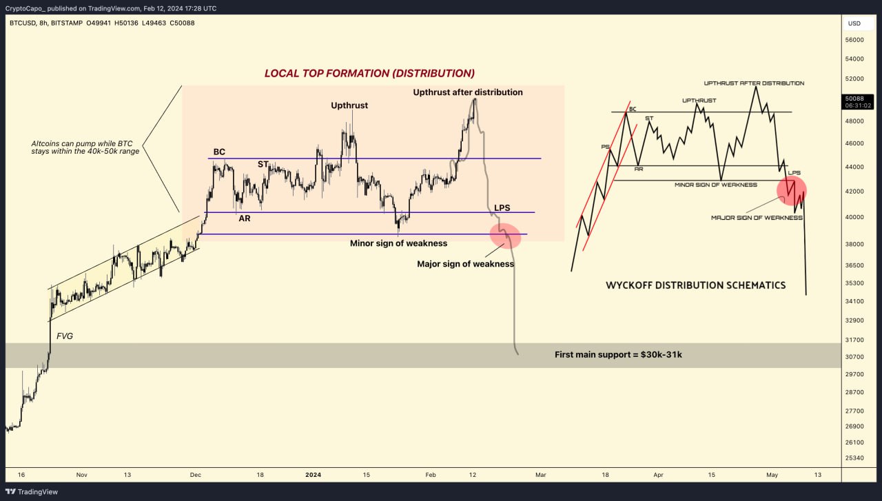 Kripto para sektörünün en çok tanınan analistlerinden bir tanesi olan Crypto Capo, kısa bir süre önce lider kripto para birimi Bitcoin (BTC) ve altcoin‘ler hakkındaki yeni düşüncelerini paylaştı.