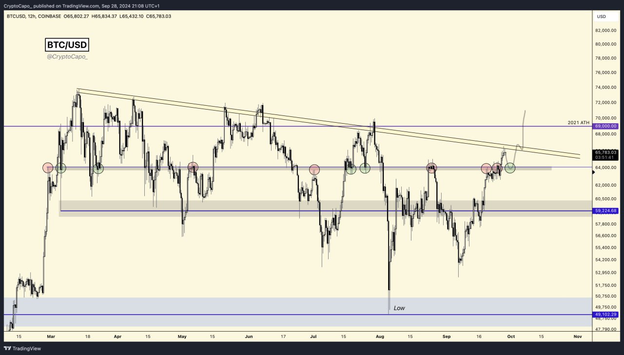 Lider kripto para birimi Bitcoin‘in (BTC) ufak bir geri çekilme sonrasında artışlarına devam edeceğini düşünen Capo, son paylaşımında şu sözlere yer verdi: