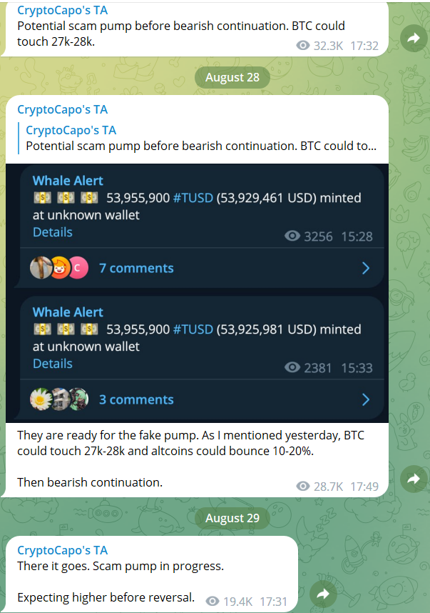 Lider kripto para birimi Bitcoin‘in (BTC) 30 bin dolar seviyelerinde işlem gördüğü günlerde, sert düşüşlerin yaşanacağını doğru tahmin eden Capo, sektörün dikkatini çekmişti.