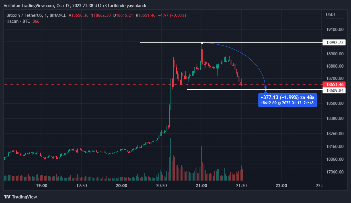 Her ne kadar son dakikalarda Bitcoin sert yükselişlerin ardından 19 bin dolar seviyelerinden 18.600 dolar noktasına gerilemiş olsa da, bu yükselişlerin bir boğa tuzağı olma ihtimali çok düşük gibi görülmekte.