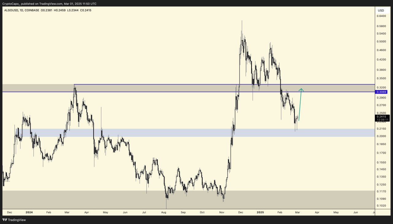 - Popüler analist ALGO grafiğinde de yükseliş tahmini yaptı. An itibariyle 0.24 dolardan işlem gören ALGO’nun da 0.30 – 0.32 dolar bölgesine yükseleceğine inanıyor.