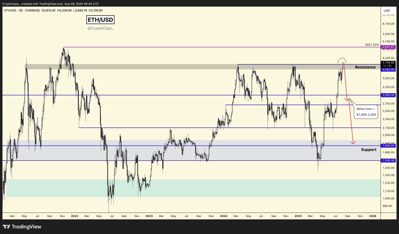 Her ne kadar Capo Ethereum‘da (ETH) düşüş tahminin de yanıldığını kabul etse de, ilerleyen süreçte ETH’nin yine sert düşebileceğini savunuyor. İşte Capo’nun son paylaşımında yer alan sözler: