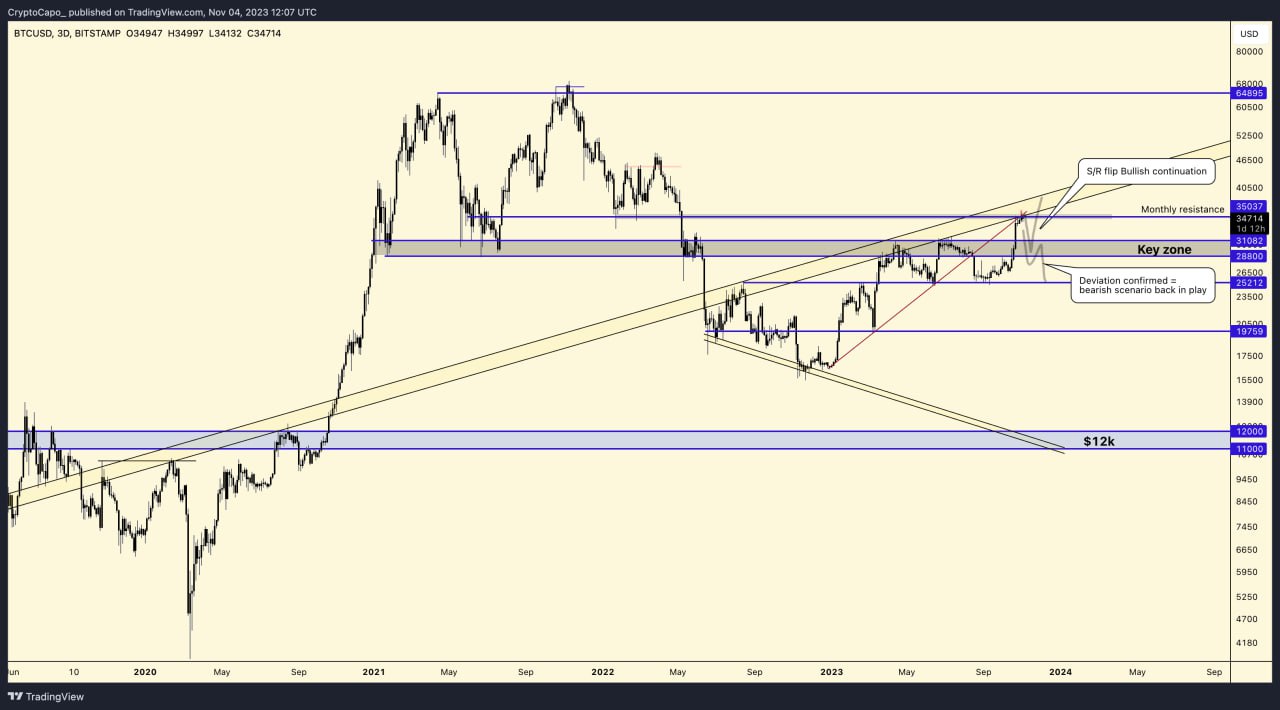 Son yıllarda yaptığı düşüş yönü tahminlerle gündeme gelen Crypto Capo isimli kripto analisti, son süreçte yavaş yavaş BTC’ye olan bakış açısını değiştirmeye başladı.