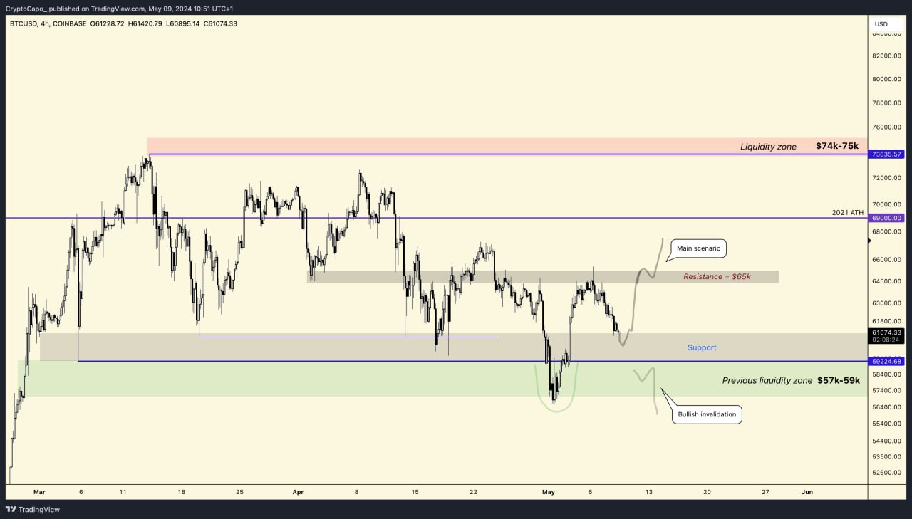 Bitcoin önceki likidite bölgesinin altında konsolide olursa yükseliş trendi bozulur, ancak bu pek olası değildir.”