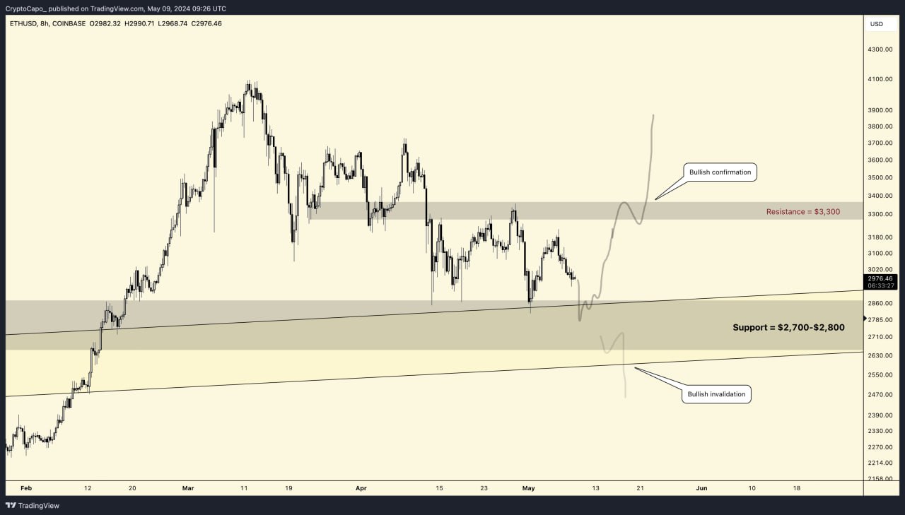 Crypto Capo, lider altcoin Ethereum (ETH) hakkında paylaştığı analizde ise şu sözleri aktardı: