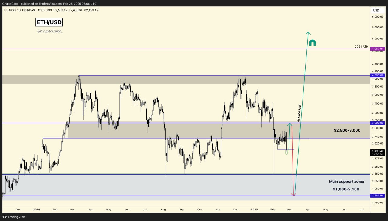 Kısa bir süre önce ise popüler analist Crypto Capo, kripto sektöründeki son duruma ilişkin bir analiz paylaştı. Capo son analizinde lider altcoin Ethereum‘da (ETH) 3 bin dolara kadar bir yükselişin yakın olduğunu söyledi.