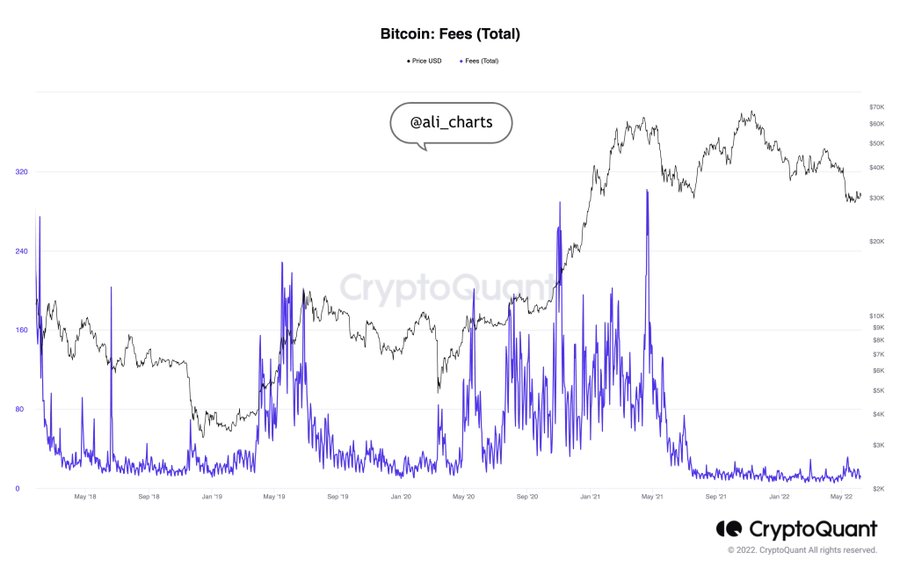 Özellikle, önde gelen bir Crypto Quant analisti olan Ali Martinez tarafından bugün itibariyle Bitcoin işlem ücretleri hakkında yeni bir analiz tweeti yayınlandı.