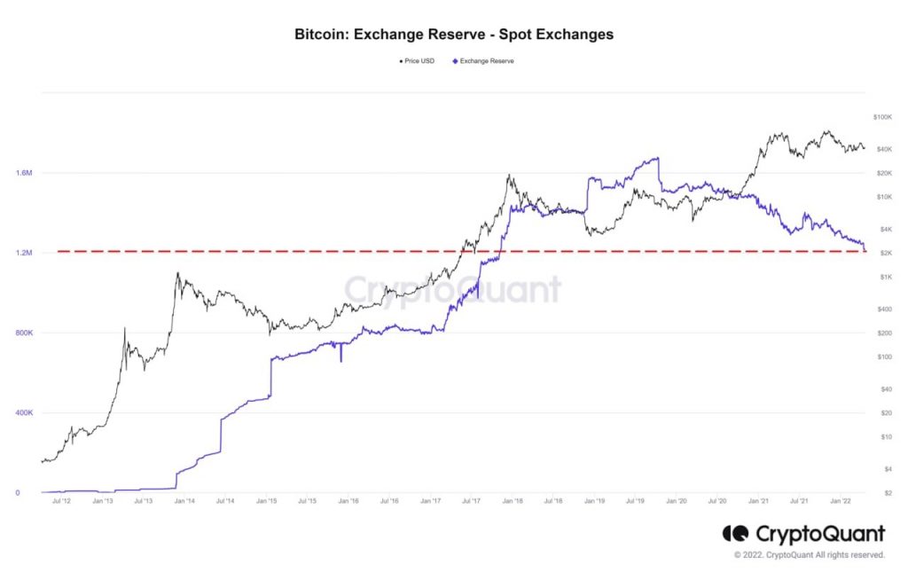 BTC spot borsaları rezervinin 4 yılın en düşük seviyesine düştüğünü aktaran CryptoQuant, yatırımcıların “hodl” etmek için lider kripto parayı borsalardan çektiğini söylüyor.