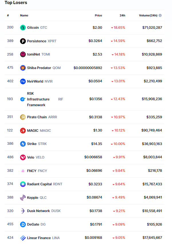 Başarılı bir veri sağlayıcısı olan CoinMarketCap’in aktardıklarına göre, altcoin’ler son 1 saat içerisinde çok ciddi düşüşler yaşadı. Bu düşüşlerin ana nedeninin ise Binance CEO’su CZ olduğu gözlenmekte.