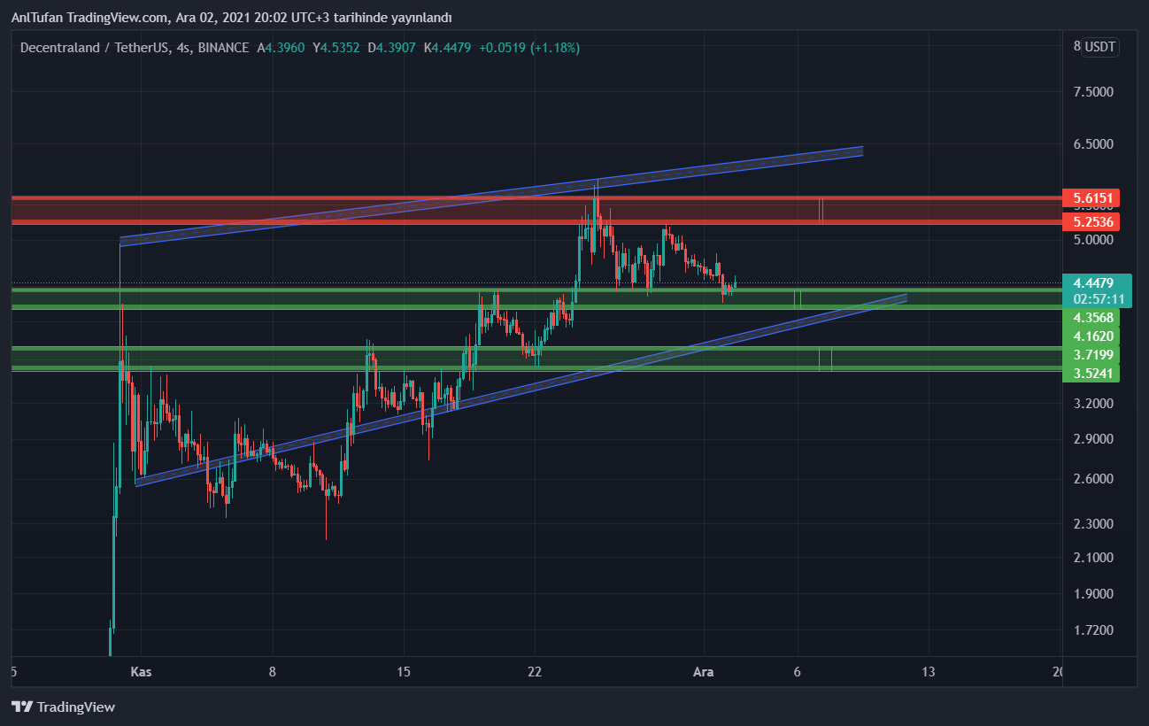 Kripto piyasasının sert bir şekilde aşağı yönlü gitmesi durumunda 3.52- 3.70 dolar ana destek seviyelerine kadar gerileyebilecek olan MANA, Bitcoin’in 46.000 dolar desteğine kadar gerilememesi durumunda, bu destek seviyesine düşmesi beklenmiyor.