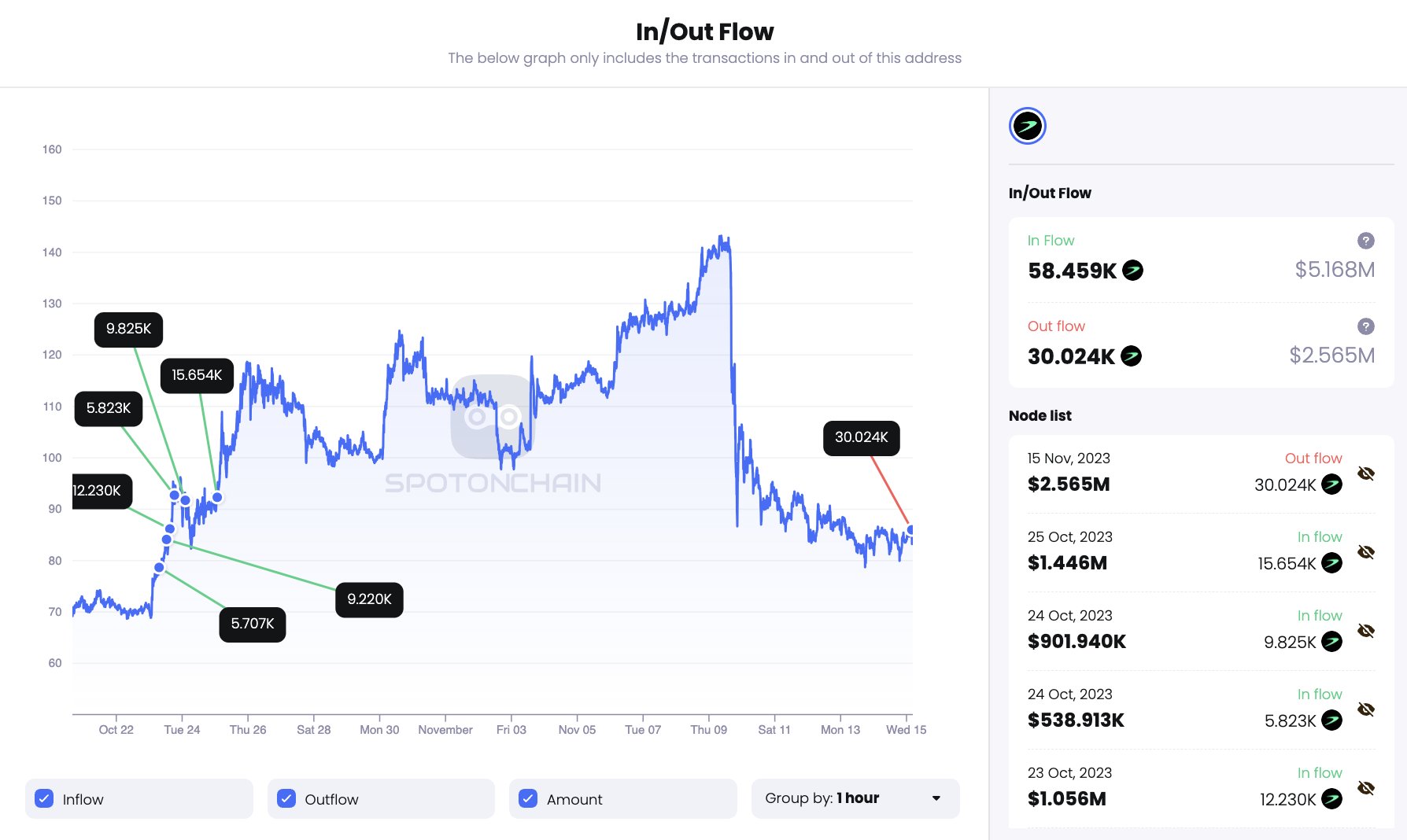 Küçük yatırımcıların haricinde balinalarda TRB’nin düşüşlerinden zarar etti. Başarılı bir veri sağlayıcısı olan Spot On-Chain zararına TRB satışı gerçekleştiren bir balina tespit etti. İşte bu balinanın son transferleri: