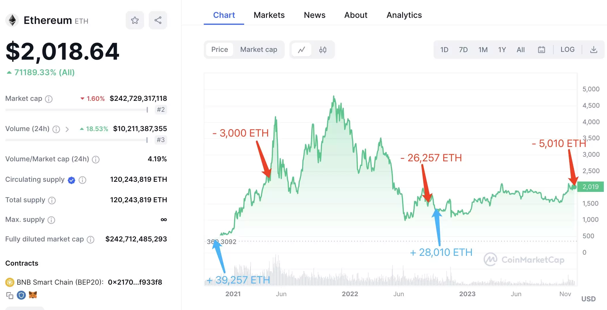 Daha sonra 20 Nisan 2021 ve 29 Ağustos 2022 tarihlerinde Binance ve HTX’e toplamda 29.257 adet ETH (47,7 milyon dolar değerinde) yatırdı.