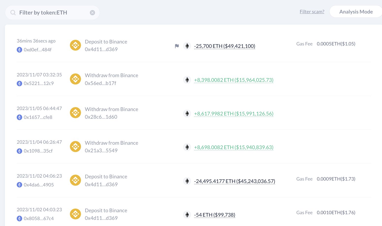 “Akıllı balina 40 dakika önce Binance‘e 25.700 adet ETH (49,42 milyon dolar değerinde) yatırdı. ETH’nin tamamı satılırsa 1,5 milyon dolar kar elde edilecektir.