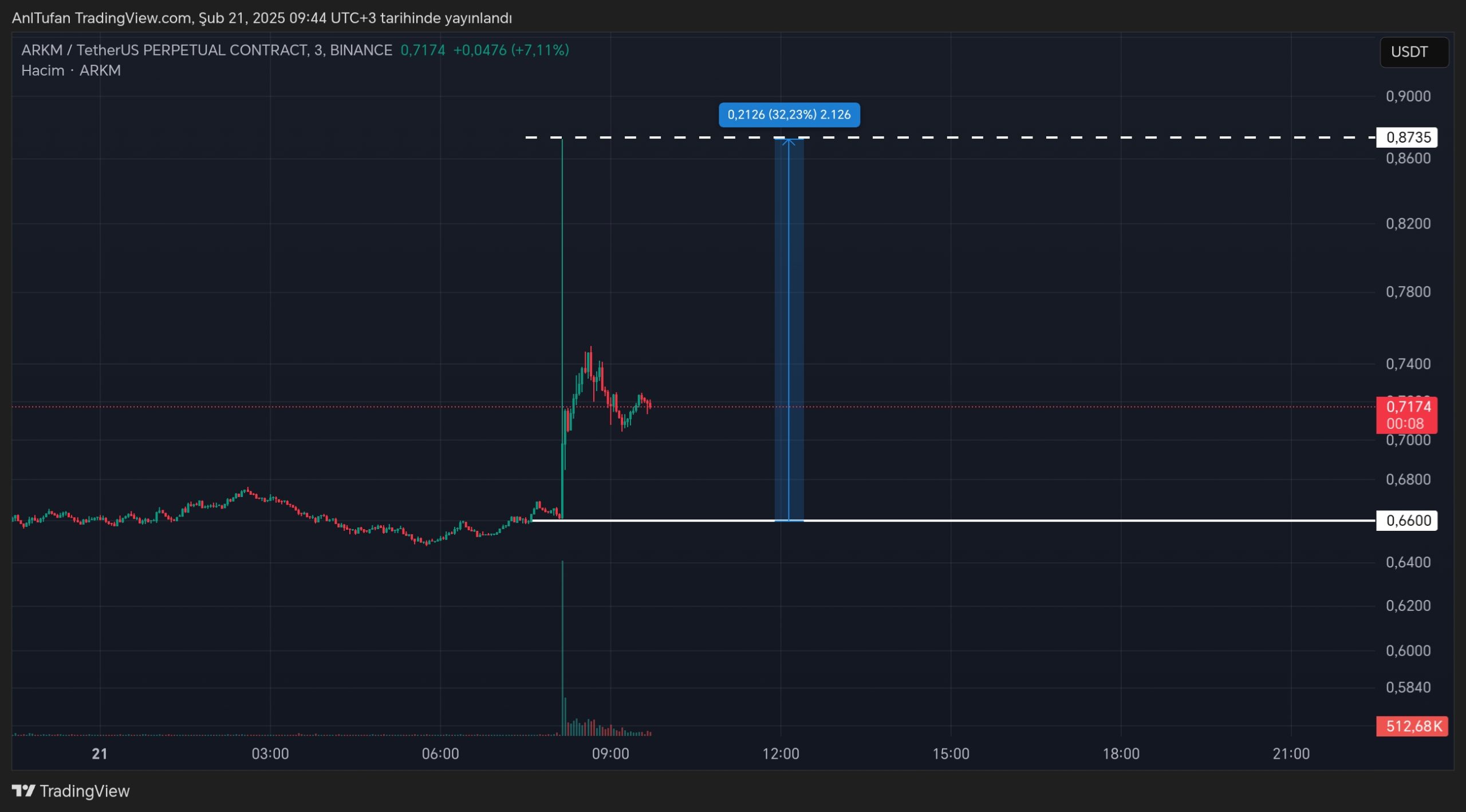 Ülkemizden değerli Galatasaray Spor Kulübüne de sponsor olan Arkham, bu son gelen Upbit listeleme gelişmesi sonrasında ani yükselişler gerçekleştirdi. ARKM listeleme sonrasında %40’a yakın bir sıçrama yapsa da, yükselişlerin bir kısmı iğne olarak kaldı.