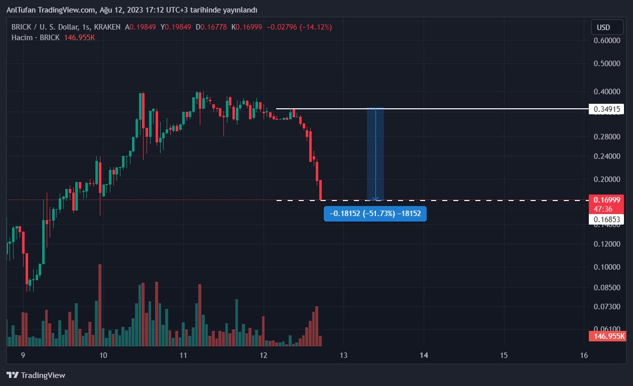 Haberimizin haberimizin yazıldığı esnada 0.169 dolar seviyelerinden işlem gören BRICK, Gate.io listelemesi sonrasında %50’den fazla düşüş yaşadı.
