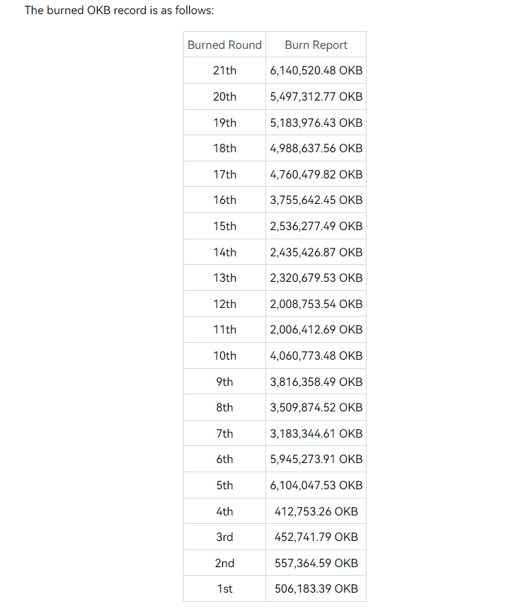 Geçtiğimiz hafta itibariyle OKX borsasının 21. OKB geri alım ve yakım işlemi tamamlandı. Popüler borsanın bu doğrultuda toplamda 6,14 milyon adet OKB (255 milyon dolar değerinde) yakımı gerçekleştirdiği görülüyor.