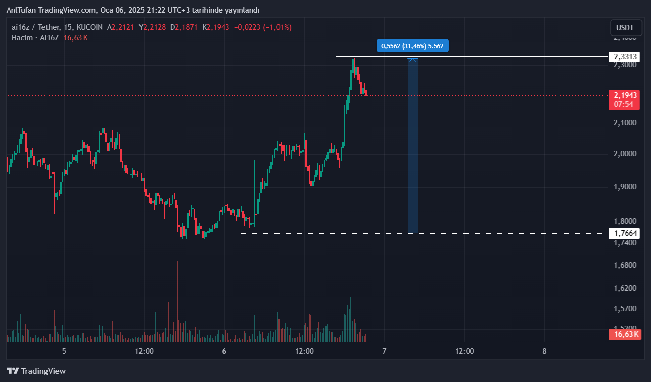 Haberimizin yazıldığı esnada 2.194 dolar seviyelerinden işlem gören AI16Z, bugün itibariyle Bybit listeleme gelişmesi ile birlikte toplamda %30’dan fazla değer kazanmayı başardı.