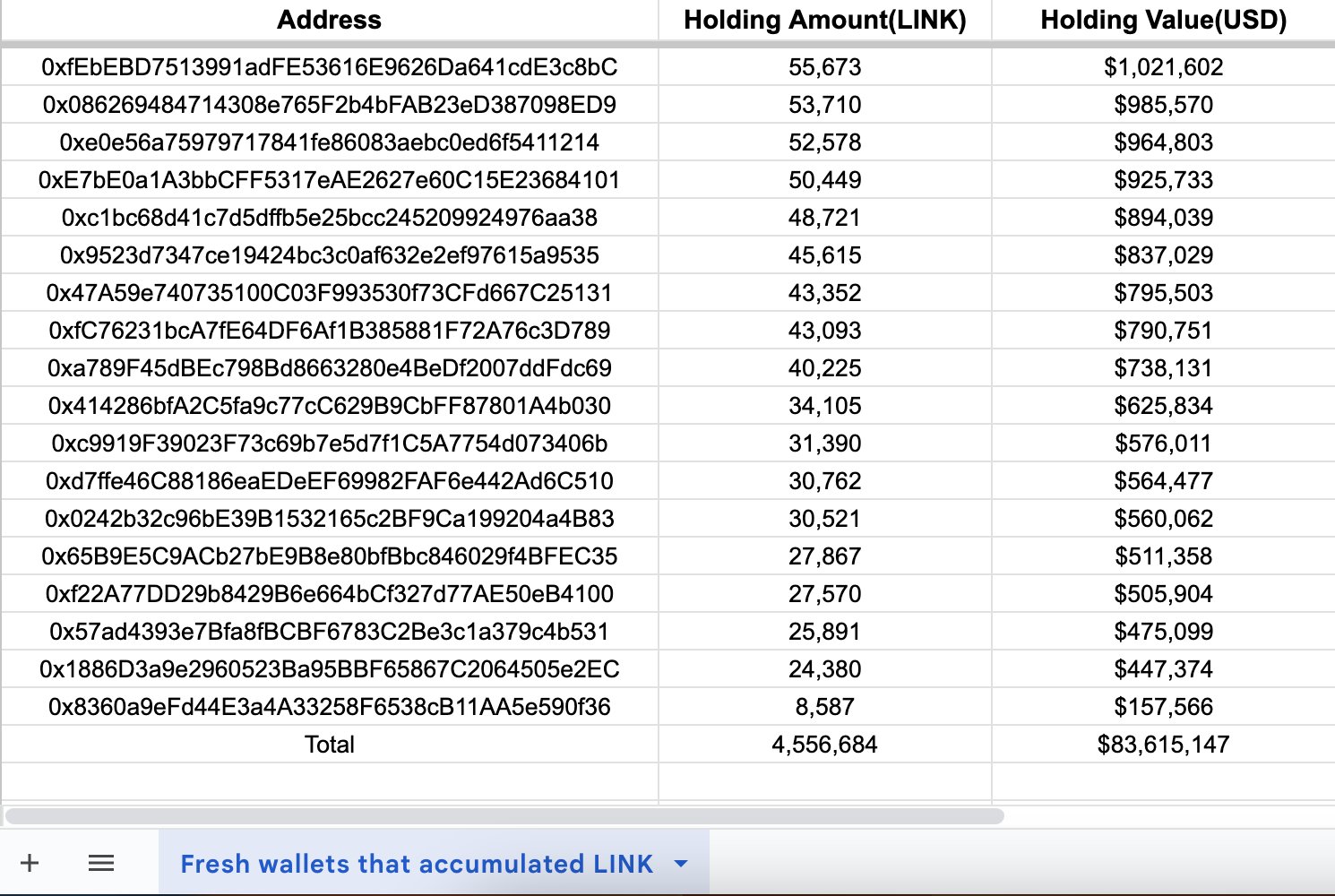 - Dev balina son 5 gün içinde 55 yeni cüzdan aracılığıyla Binance‘den toplamda 4.556.684 adet LINK (83,6 milyon dolar değerinde) satın aldı.