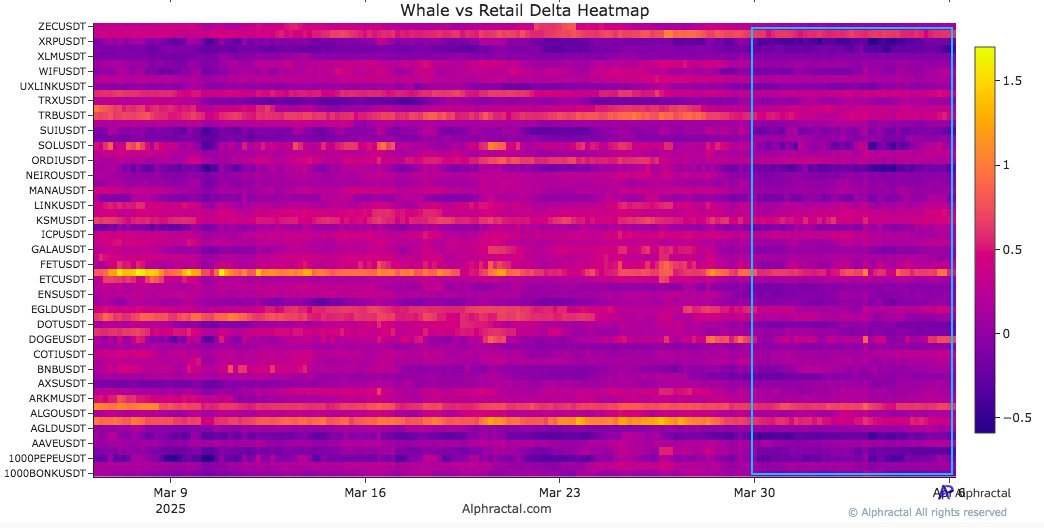 “Alphractal verilerine göre hazırlanan balina vs retail oranı, balinaların BTC’de küçük yatırımcılara kıyasla daha fazla short (kısa pozisyon) açtığını gösteriyor.