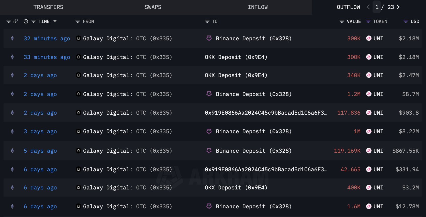 Başarılı bir zincir içi veri sağlayıcısı olan Look On-Chain, kısa bir süre önce Galaxy Digital isimli dev kripto şirketinin Uniswap (UNI) satışları gerçekleştirdiğini tespit etti.