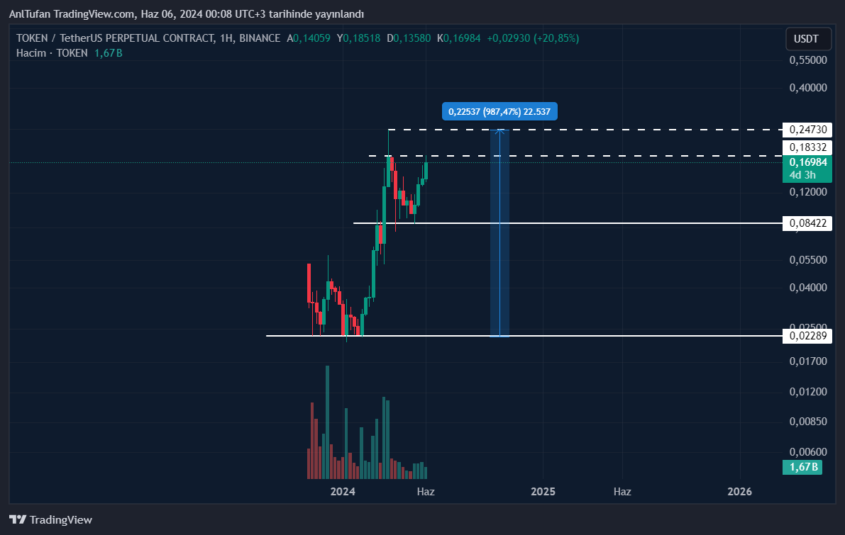 TOKEN isimli altcoin Binance spot piyasada listelenmemiş olsa da, Binance vadeli piyasada yer alıyor. TOKEN haftalık grafikte son süreçte değerini 10’a katladığı gözlenmekte.