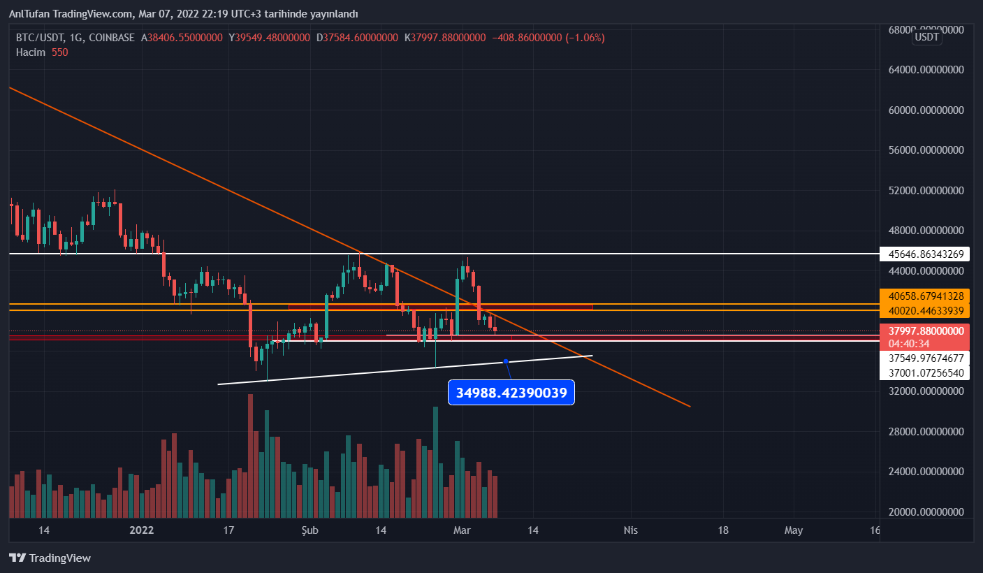 38.000 dolar desteğinin de kırılması durumunda çok daha sert bir şekilde düşebilecek olan Bitcoin, 37.500 – 37.000 dolar desteğine bir geri çekilme yaşayabilir.
