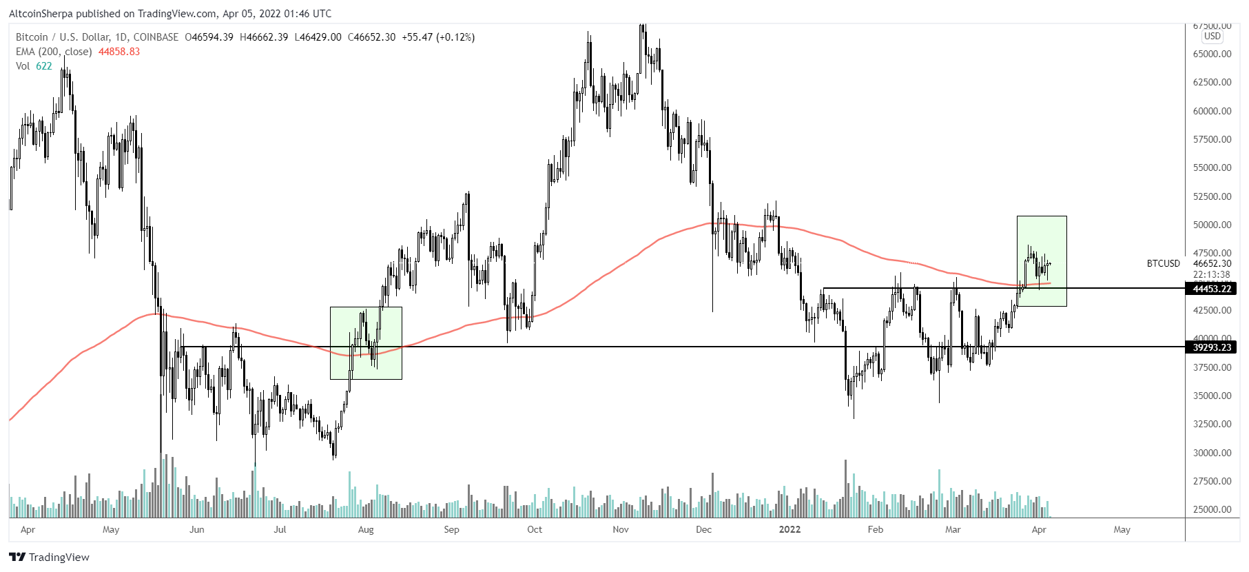 BTC‘yi, 21 Ağustos 2021 tarihindeki patlamaya benzeten popüler analist 200 günlük EMA’nın da halen çok iyi olduğunu savunmakta.