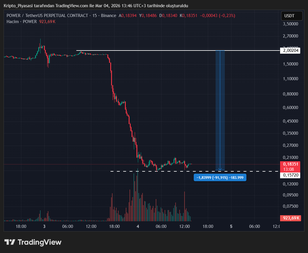 Piyasadaki artışlara rağmen Binance borsasında listelenmiş POWER isimli altcoin’de ise beklenmedik bir olay yaşandı. POWER dakikalar içerisinde -%91’lik bir çöküş yaşadı.