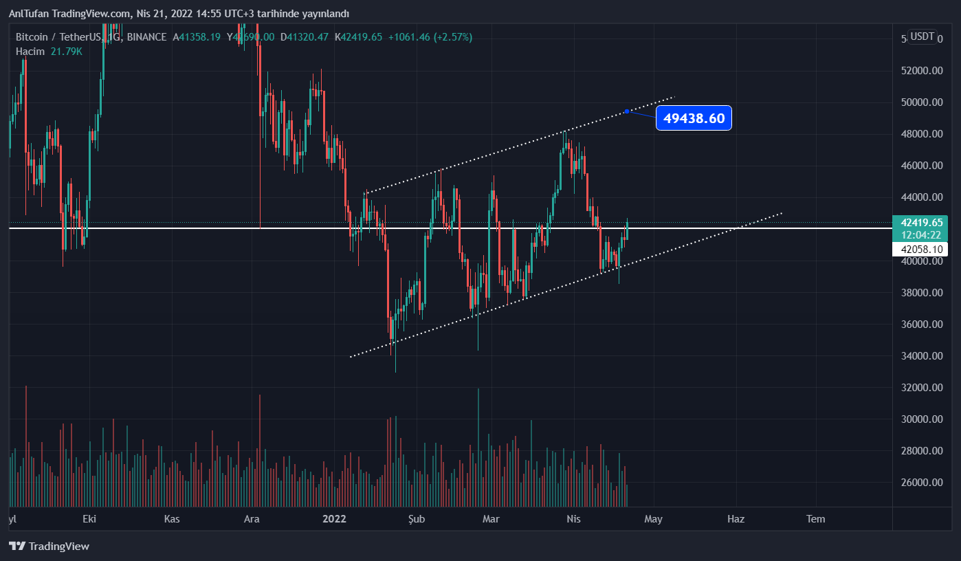 İlerleyen süreçte bu seviye üzerinde kalmasıyla birlikte lider kripto paranın tekrardan paralel kanalın üst trend noktası olan 49.400 dolar seviyelerine yükseldiğini görebiliriz.