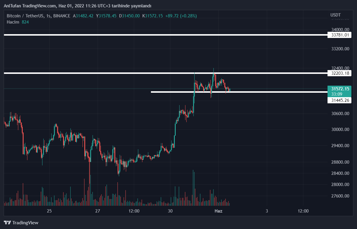 Bu destek seviyesinin kaybedilmesi halinde lider kripto para biriminin üzerinde satıcı baskısı artacağı gibi yükselişlerin başlaması için ise BTC‘nin 32.200 dolar direncini aşması gerekmekte.